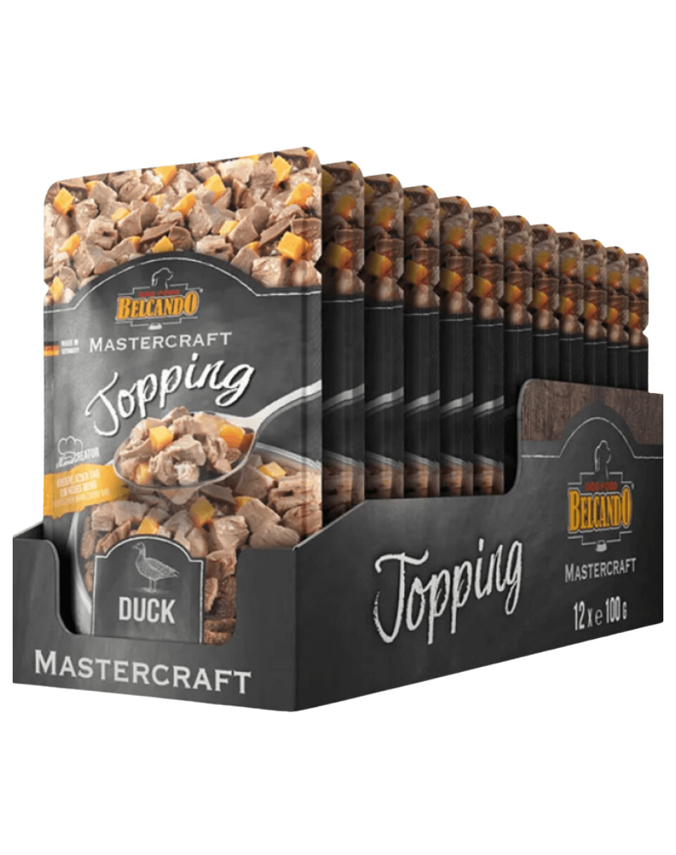 Nový topping BELCANDO MASTERCRAFT vám umožní doladit jakékoli granule. Kostky čerstvého masa se jemně uvaří ve vlastní šťávě a jsou smíchány s trochou zeleniny. To znamená, že jejich energetická hodnota je nižší než u klasického mokrého krmiva. Polevy jsou "přísady do granulí" - to dělá z jakýchkoliv granulí svěží, přirozenou explozi chuti pro vašeho psa. Chutné, čerstvé a šťavnaté. Garantujeme vám, že váš pes vám svým chováním při přípravě dá najevo, jak se na čerstvou večeři těší.