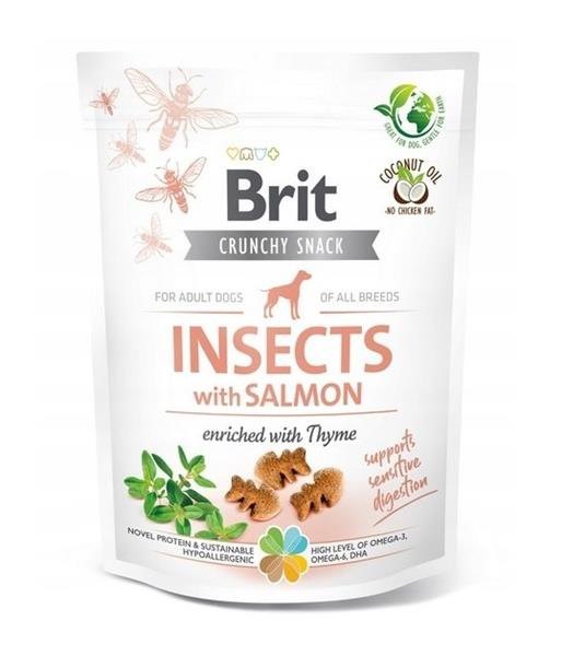 Brit Care Crunchy Snack Cracker Insect&Salmon je jedinečný pamlsek pro psy, který jistě upoutá jejich pozornost. Tyto bezobilné pochoutky jsou složeny z hmyzího proteinu, lososa a tymiánu, což dává jedinečnou kombinaci chutí a vůní. Pamlsek byl speciálně vyvinut pro dospělé psy všech plemen, kteří potřebují zdravé svačiny mezi jídly. Složení sušenek bylo připraveno tak, aby byla zajištěna nejlepší kvalita a chuť. Pochoutka neobsahuje obiloviny, umělá barviva, dochucovadla ani cukr, díky čemuž je zdravou a přirozenou svačinkou pro vašeho mazlíčka. Hmyzí protein je lehce stravitelný a zajišťuje výbornou asimilaci pochoutek, přídavek lososového proteinu a tymiánu zlepšuje chuť a vůni. Lněné semínko a sušená jablečná dužina obsažené v pamlsku pomáhají udržovat správnou činnost trávicího systému psa. Brit Care Crunchy Snack Cracker Insect & Salmon je dokonalým doplňkem každodenní stravy vašeho psa a poskytuje mu zdravou a chutnou svačinku. Tento pamlsek je díky svému neobvyklému složení vhodný i pro psy s potravinovými alergiemi.