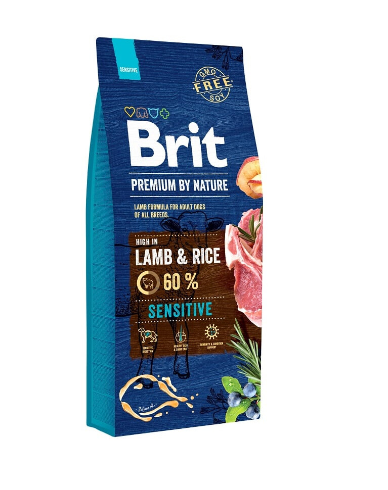 Brit Premium by Nature Sensitive s jehněčím masem – kompletní krmivo pro dospělé psy.