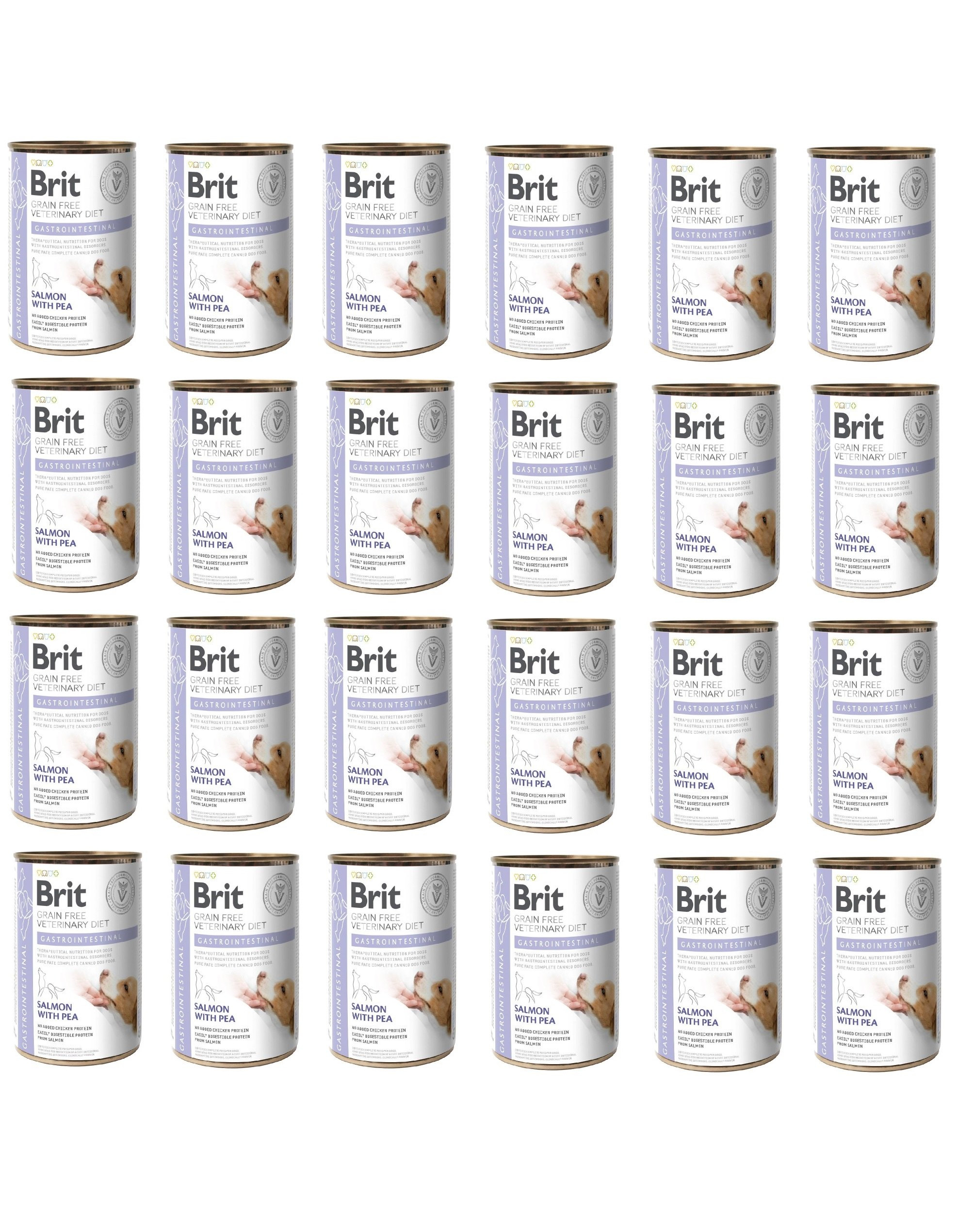 Veterinární konzervy s lososem a hráškem pro dospělé psy se zažívacími problémy.
