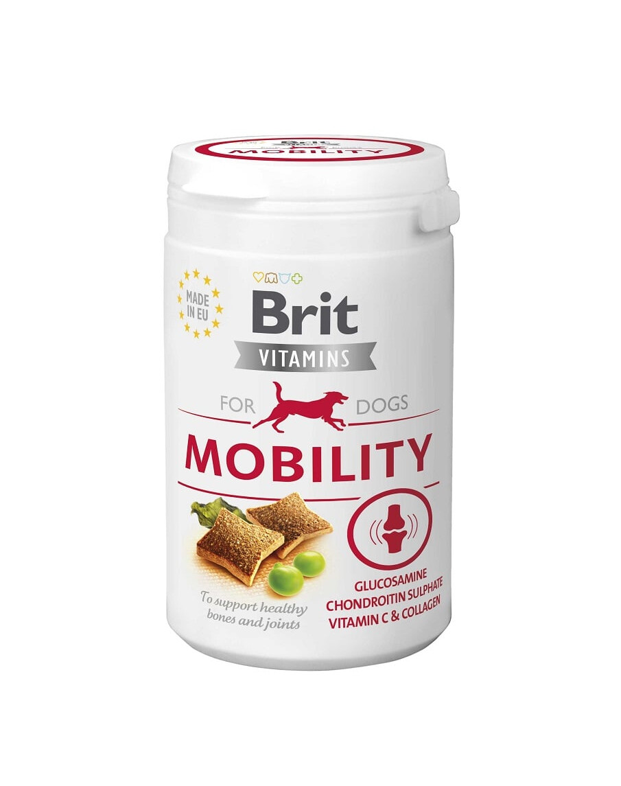 Brit Vitamins Dog Mobility jsou poloměkké, chutné pamlsky určené pro dospělé psy, kteří potřebují podporu mobility – zejména starší, velké, aktivní nebo pracovní psy. Poskytují každodenní podporu pro zdravé klouby, silné kosti a dobrou mobilitu.