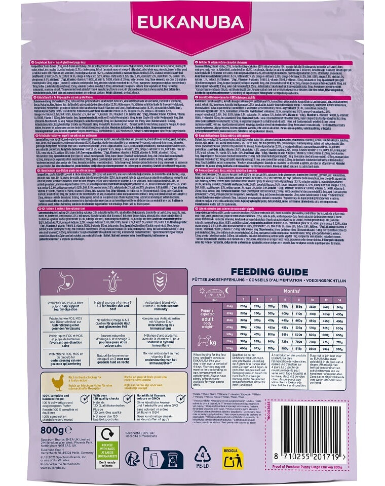 Čerstvé kuře (21%), sušené kuře a krůta (20% z toho kuře 14%, přírodní zdroj glukosaminu, chondroitinu a taurinu), ječmen, kukuřičná krupice, kukuřice, pšenice, rýže, drůbeží tuk, sušené řepné řízky (2.3%), kuřecí omáčka, rybí olej (přírodní zdroj omega-3 mastné kyseliny), sušená celá vejce, minerály, sušené pivovarské kvasnice (přírodní zdroj vitamínů skupiny B a selenu), fruktooligosacharidy (0.24%, přírodní prebiotikum), mannanoligosacharidy (0.13%, přírodní prebiotikum).