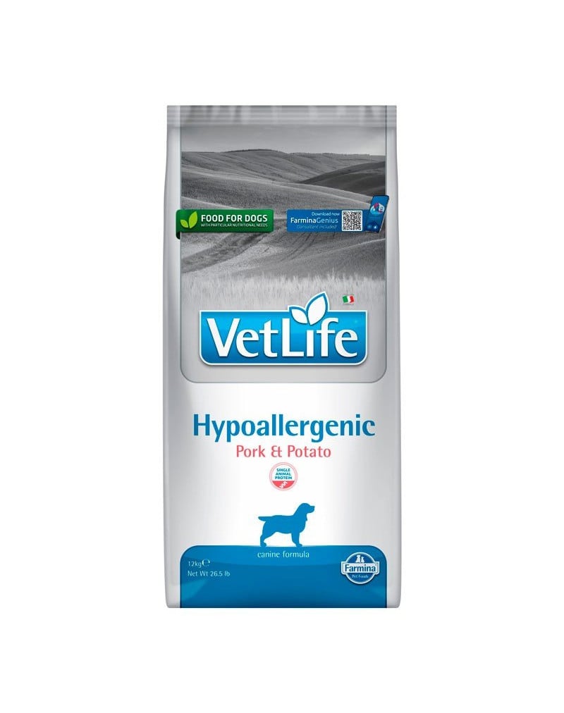 Farmina Vet Life Hypoallergenic Pork & Potato je kompletní dietní krmivo pro psy určené ke snížení nesnášenlivosti složek a živin; podporuje funkci kůže v případě dermatóz a vypadávání srsti.