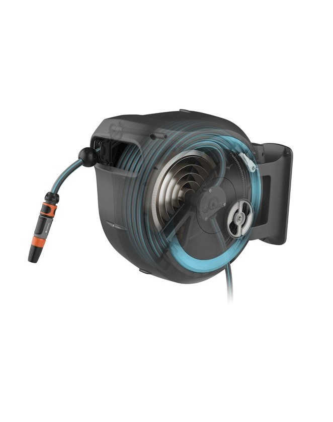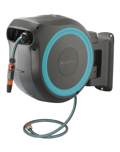 Praktické zámky udržují 25metrovou hadici v krátkých intervalech a mírné zatažení za konec hadice uvolní zajišťovací mechanismus. Pružina zabudovaná do cívky hadici automaticky navíjí. Integrované vedení zabraňuje kroucení a zalomení hadice při převíjení.