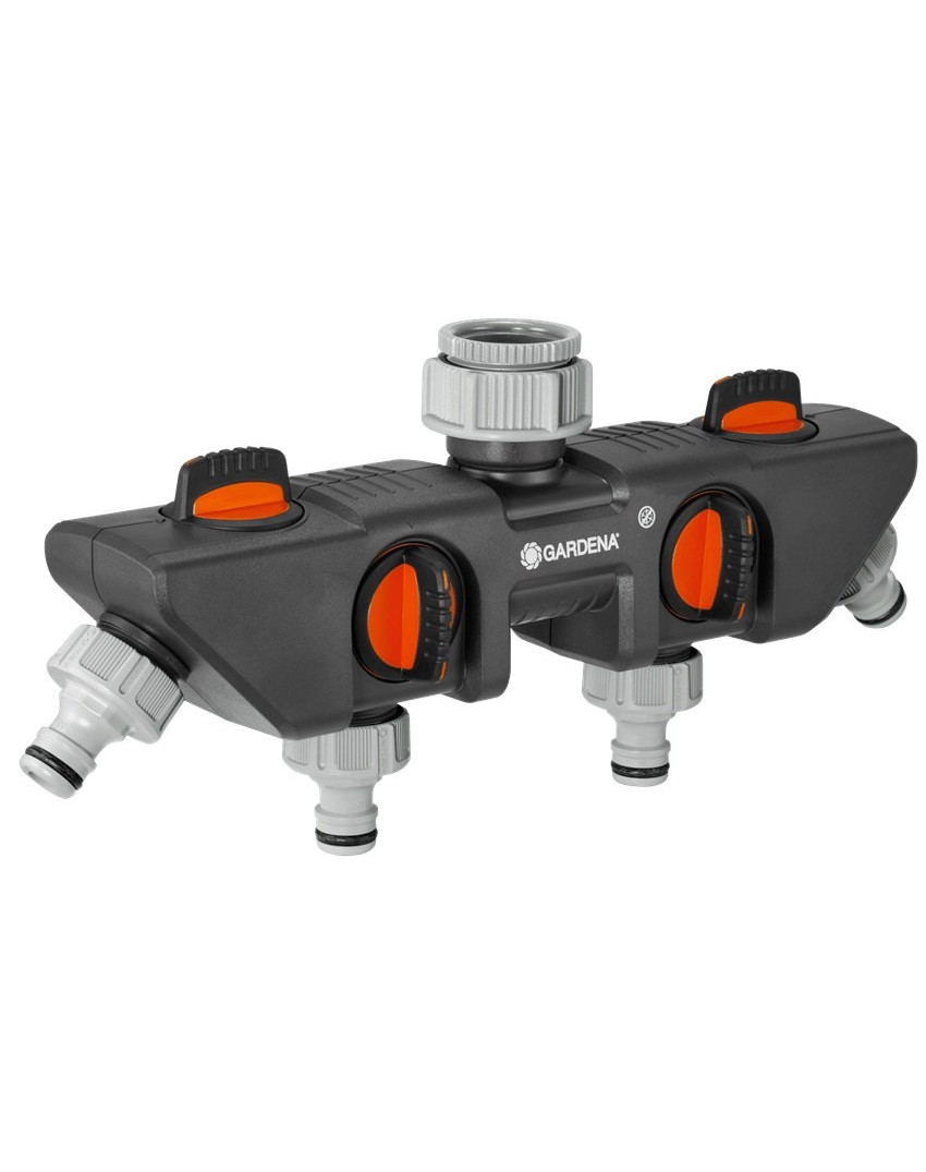 Čtyřcestný rozbočovač pro současné připojení čtyř zařízení k jednomu kohoutku. Uživatel může nastavit průtok vody pro každý vstup zvlášť.