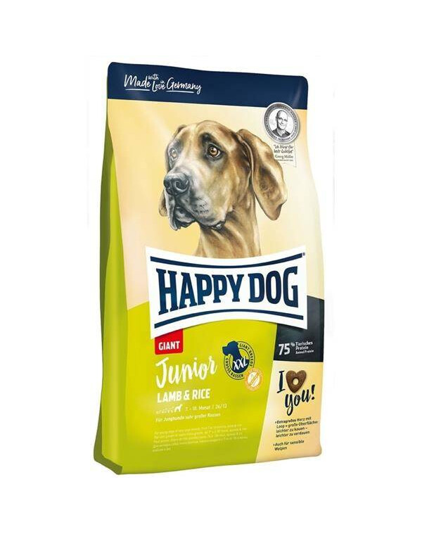 Granule Happy Dog je ideální pro mladé psy obřích plemen od 6 měsíců věku. Protože neobsahuje drůbeží maso, je vhodné i pro citlivé psy. Pro velmi velká plemena psů je Granule důležité zejména ve druhé fázi růstu po 6 měsících. Když se tempo růstu postupně zpomaluje, snižuje se i potřeba živin. Aby se předešlo poruchám růstu souvisejícím s živinami, doporučujeme změnit krmivo na krmivo se sníženým obsahem živin.Výhody krmiva Happy Dog Junior Giant Lamb Rice:
