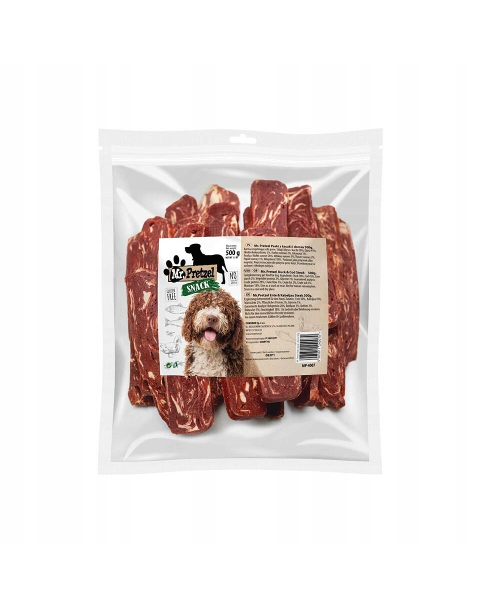 MR. PRETZEL Paski z kaczki i dorsza 500 g przysmak dla psa