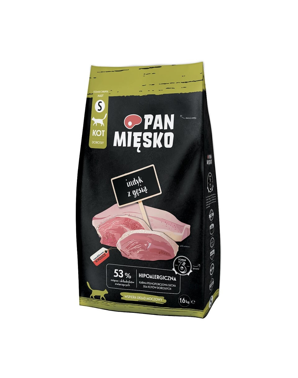 Sušené krůtí maso (32,5 %), hydrolyzovaná kuřecí bílkovina (8,5 %), hnědá rýže (8,5 %), bílá rýže (8,5 %), hrách, loupaný hrách, hovězí tuk (6 %), sušené husí maso (4 %), lněné semínko, řepné řízky (z cukrové řepy), minerální látky, hydrolyzovaná kuřecí játra (1,5 %), sušená jablka (1 %), lososový olej (0,5 %), sušená čekanka (0,5 %), MOS (manno-oligosacharidy), sušené pivovarské kvasnice, sušené brusinky (0,2 %), juka mojave, glukosamin hydrochlorid, chondroitin sulfát.