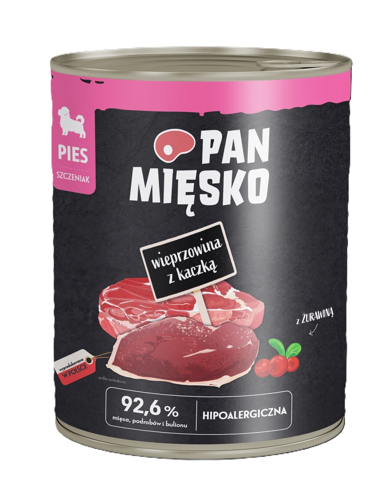 50 % vepřové maso (28 % svalovina, 11 % plec, 6 % játra, 5 % ledviny), 27,6 % vývar, 15 % maso z kachny, 6 % jablko, 1 % minerály, 0,2 % olej z lososa, 0,1 % sušené pivovarské kvasnice, 0,1 % brusinky.
