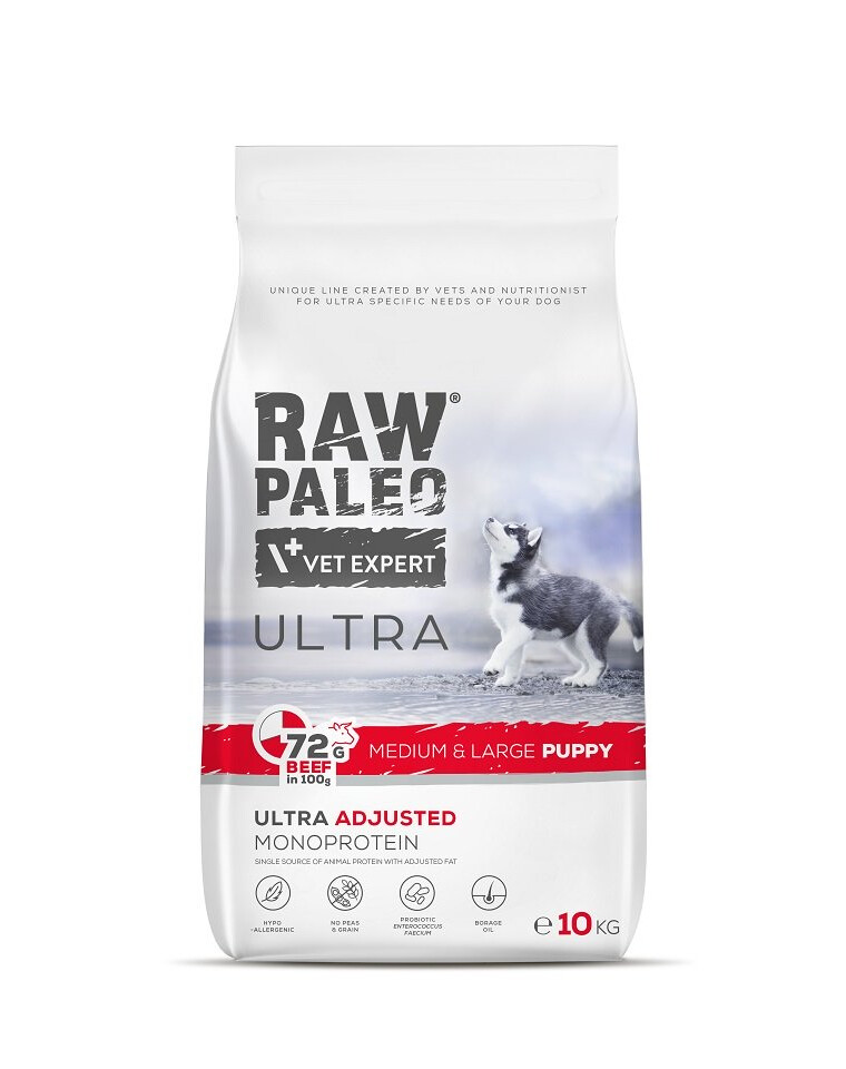 Hovězí maso 72 g/100 g (čerstvě připravené hovězí maso (33 g/100 g)*; sušené hovězí maso (29 g/100 g), hovězí tuk (10 g/100 g)), batáty, brambory, čerstvě připravená mrkev (5 g/100 g), minerální látky, zeleninový vývar, lososový olej (0,5 g/100 g), fruktooligosacharidy (0,05 g/100 g), mannanoligosacharidy (0,035 g/100 g), brutnákový olej Borago officinalis (0,015 g/100 g).