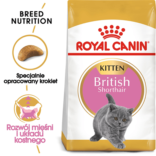 Royal Canin British Shorthair Kitten je kompletní superprémiové krmivo pro Britská krátkosrstá koťata do 12 měsíců.