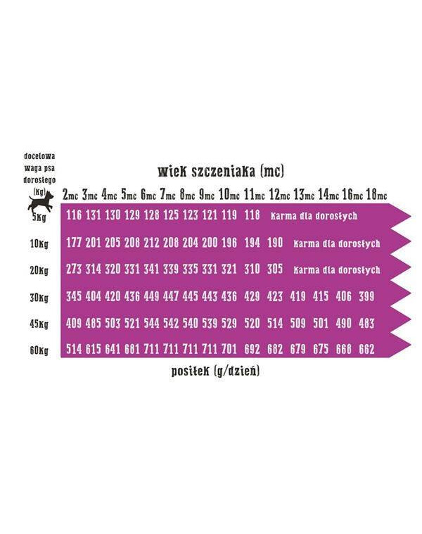 Jedná se o chutnou startovací variantu pro větší štěňata! V této kombinaci najdou štěňata větší křupky, které větší psí juniory zabaví na delší dobu. Jídlo je vyrobeno z kombinace tří neobvyklých surovin: krůtí + jehněčí + jablka. Kachní maso je vynikajícím zdrojem lehce stravitelných a výživných bílkovin a podporuje imunitu díky fosforu, železu, draslíku a vitaminům A, B a E. Jehněčí maso je choulostivé a zdravé, doporučuje se zejména pro alergiky a citlivé psy. V kombinaci s jablky, která jsou bohatá na vlákninu a vitamíny, je to ideální startovací balíček pro každé štěně! To vše je doplněno lososovým olejem, který kromě blahodárného vlivu na organismus zajišťuje také dobrý stav kůže a krásnou, lesklou srst! Opravdu zdravý začátek!Neobsahuje GMO, lepek a umělá barviva